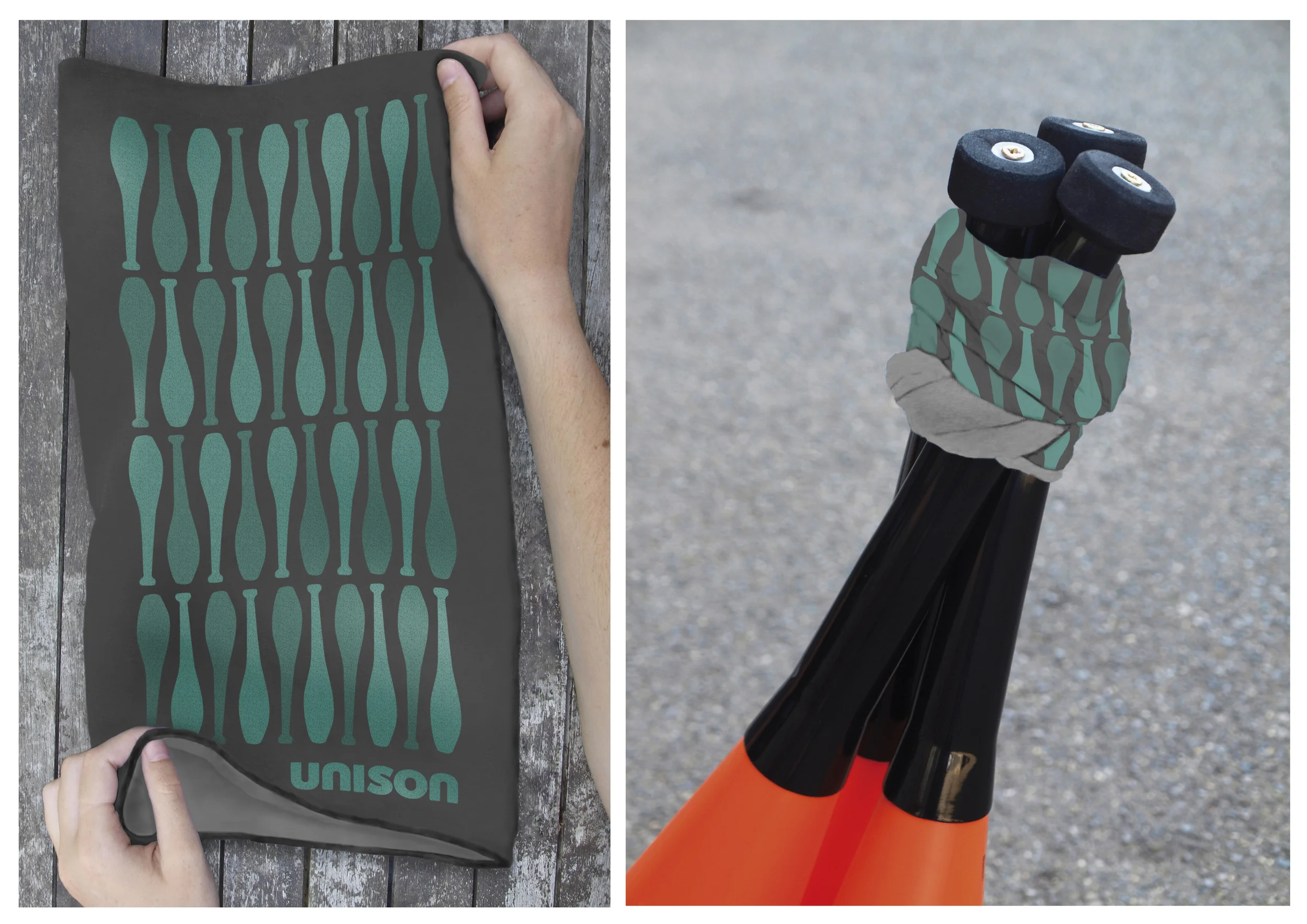 Solution | Battle loose clubs by keeping them together as a unit, using tubular stretchy fabric to tie the clubs together. The flat surface of the fabric allowed for trick patterns to be printed on it, which is useful for the juggler whilst learning.